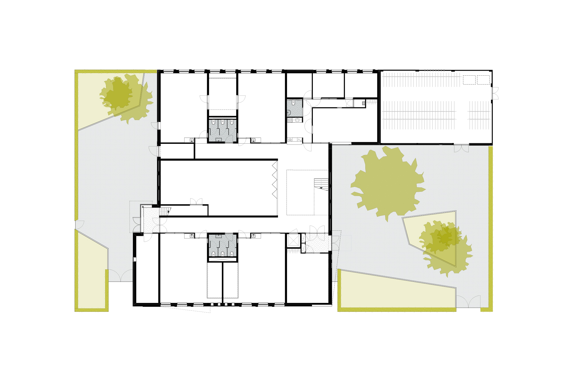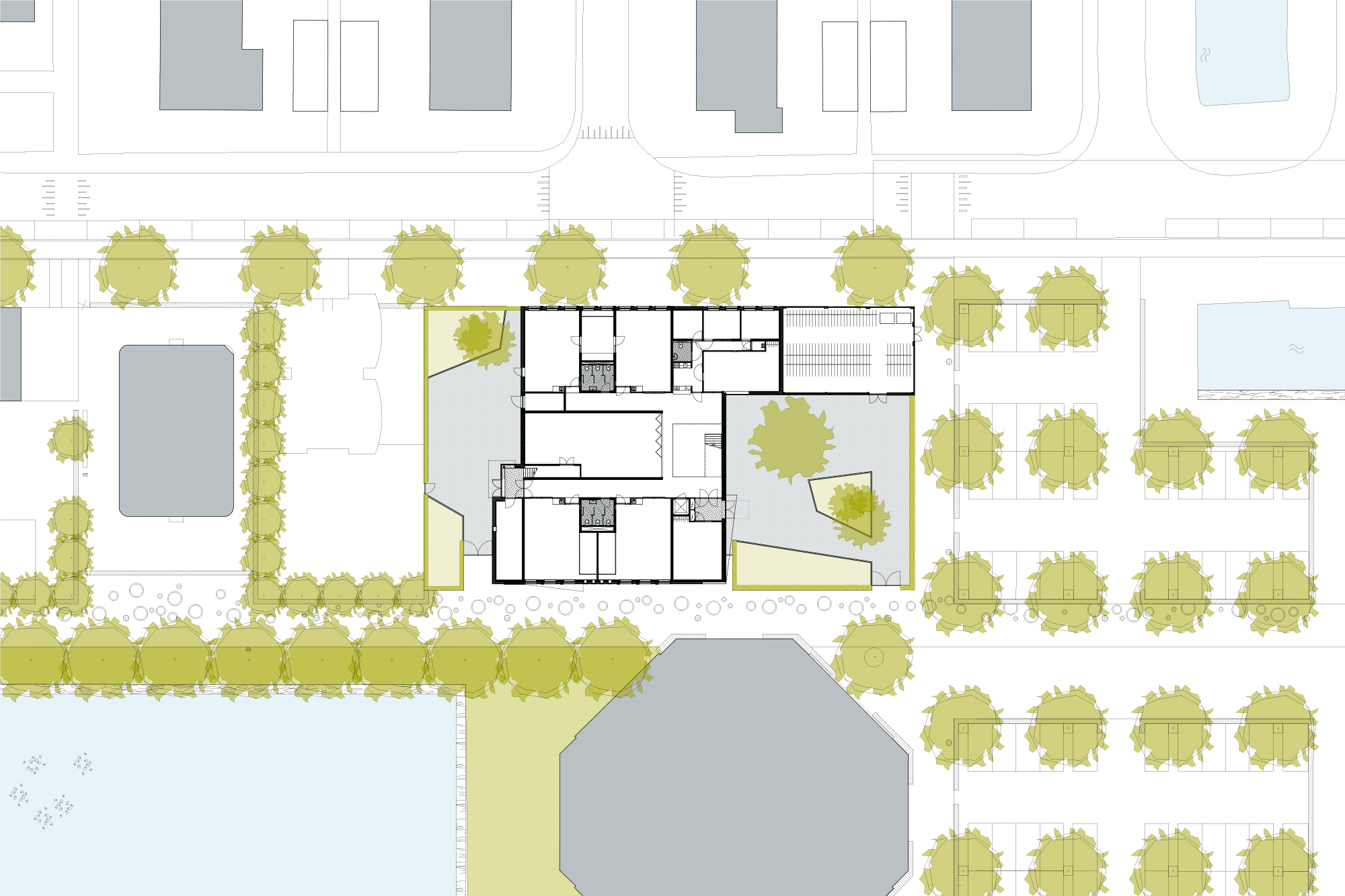 Het landschap is met behoud van de waardevolle opstanden eenvoudig te transformeren naar een prachtige buitenruimte voor sport en ontmoetingen, maar ook voor de logistieke afwikkeling. Het landschap is ook de drager voor de nieuwe ontwikkeling van de open, flexibele gelaagde nieuwbouw. De oude gebouwen blijken verrassend genoeg uitermate geschikt voor de nieuwe onderwijsfunctie. Door doorbrekingen, samenvoegingen en ruimtes open te laten, ontstaan dynamische onderwijsruimten. Bij de Internationale School gaat het niet alleen om het maken van ruimte, maar het geeft ook ruimte en vrijheid voor ontwikkelingen. Architectuur is het vormgeven van intermediairs. Op dat raakvlak manifesteert zich de architectuur. Op dat vlak manifesteert zich ook de integraliteit. Het betreft hier een Europese aanbesteding.