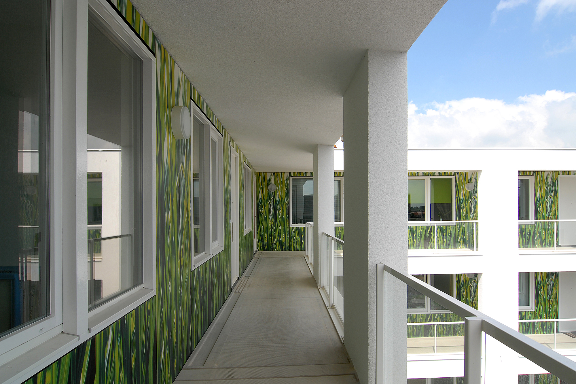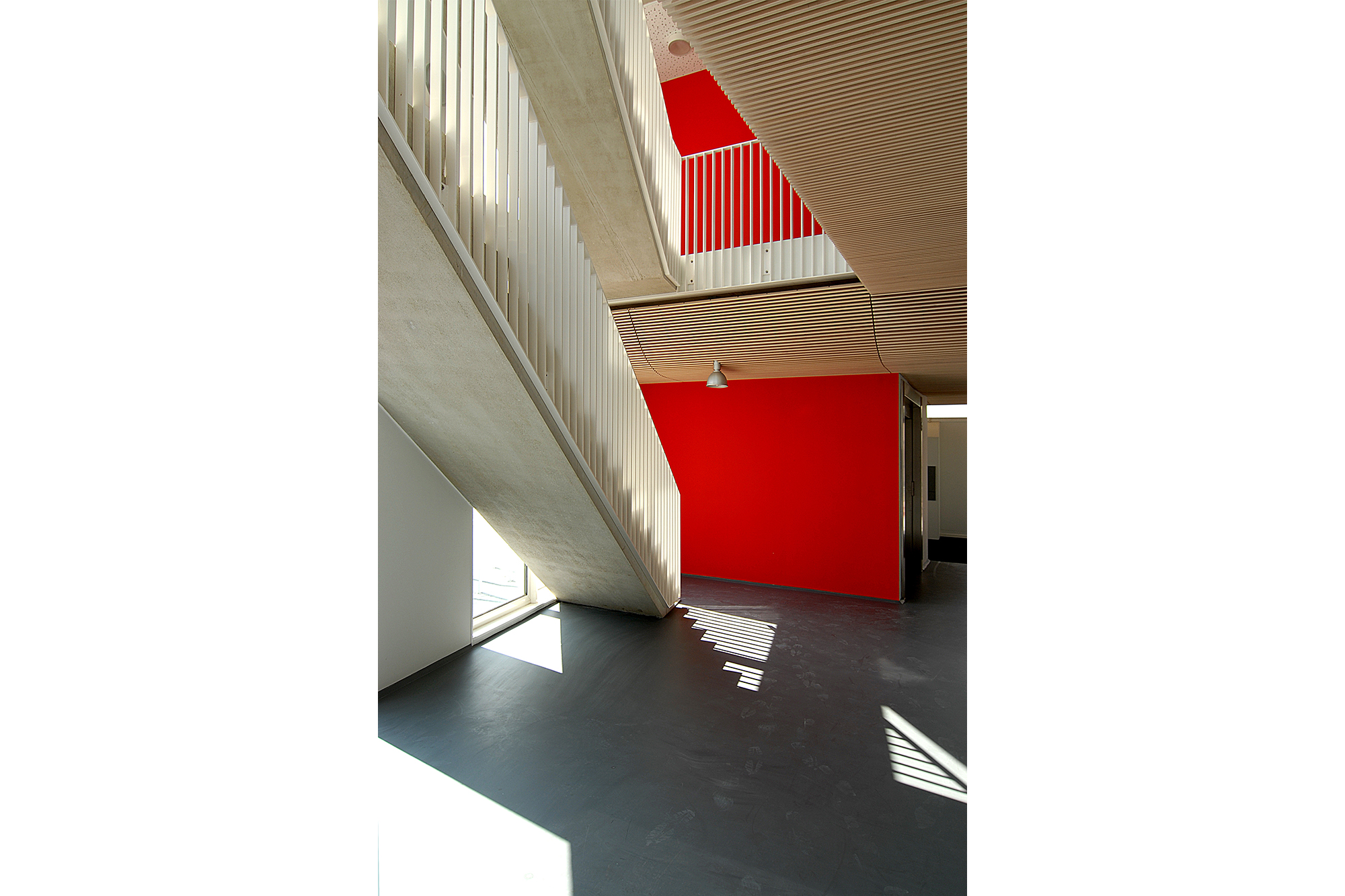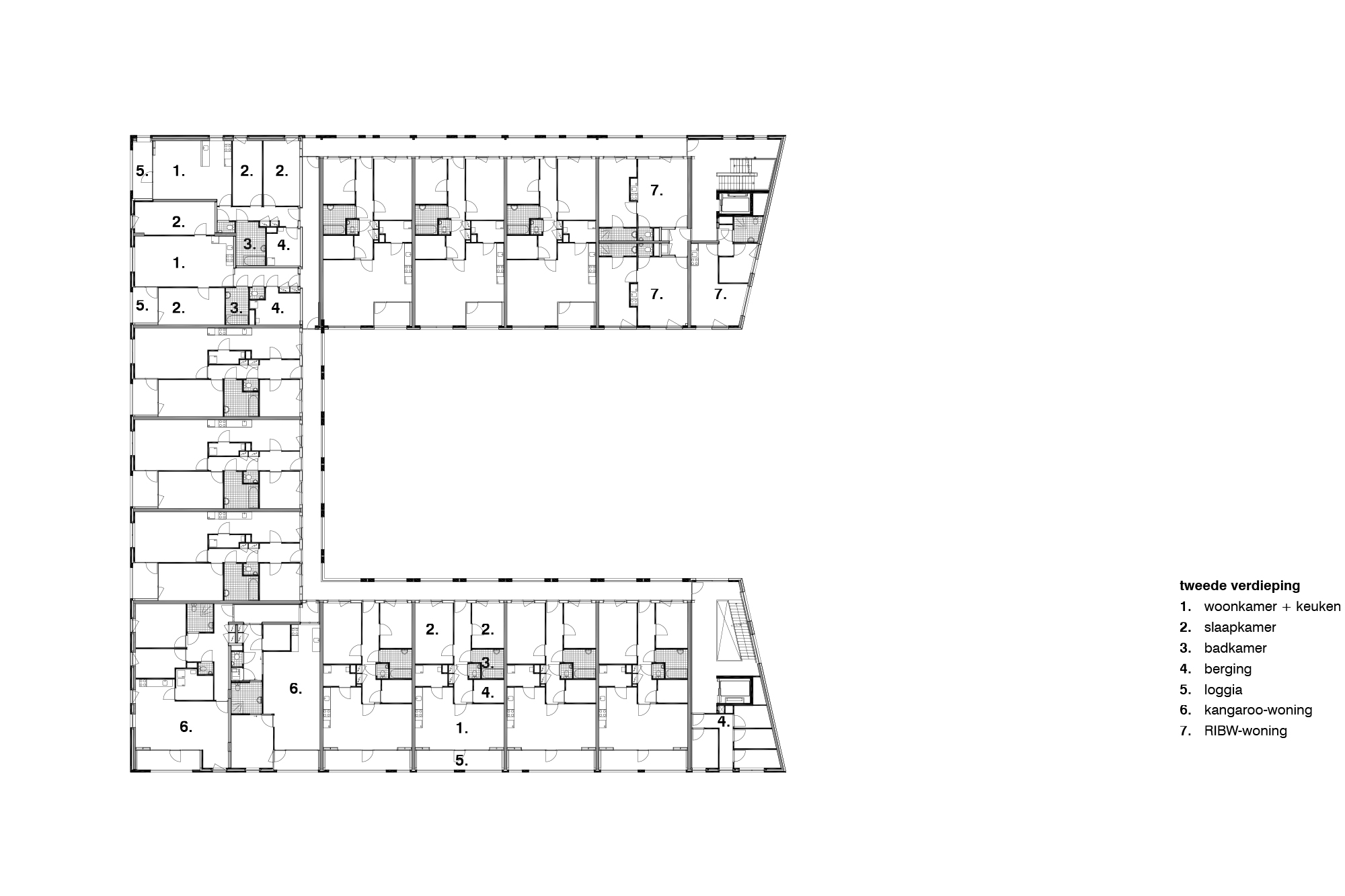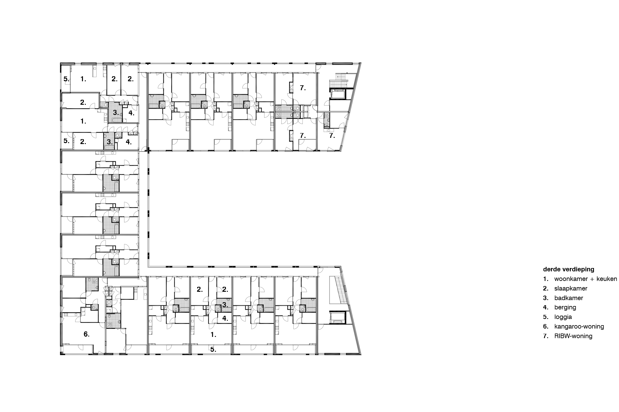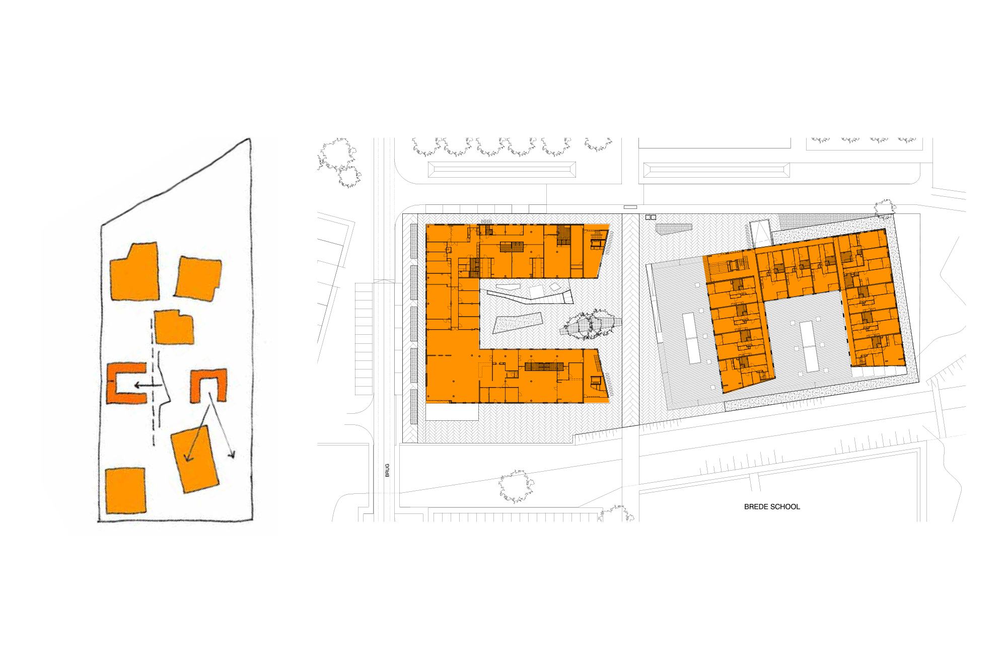 Hier liggen het kinderdagverblijf, de kinderpraktijk en het consultatiebureau bij elkaar aan de noordzijde en anderzijds het SWOC-restaurant-zotel aan de zuidvleugel. De buitengevel is van ruw bruin-paars metselwerk met wisselende penanten en horizontale banden als een filigrain gevelpositie. Aan de binnenhoven ligt een regelmatig grid van wit stucwerk, en een terugliggende gevel met een fris grasmotief. Zo ontstaat er een duidelijke binnen- en buitenzijde, die ter plaatse van het centrale plein, de voetgangersroute, bij elkaar komen.