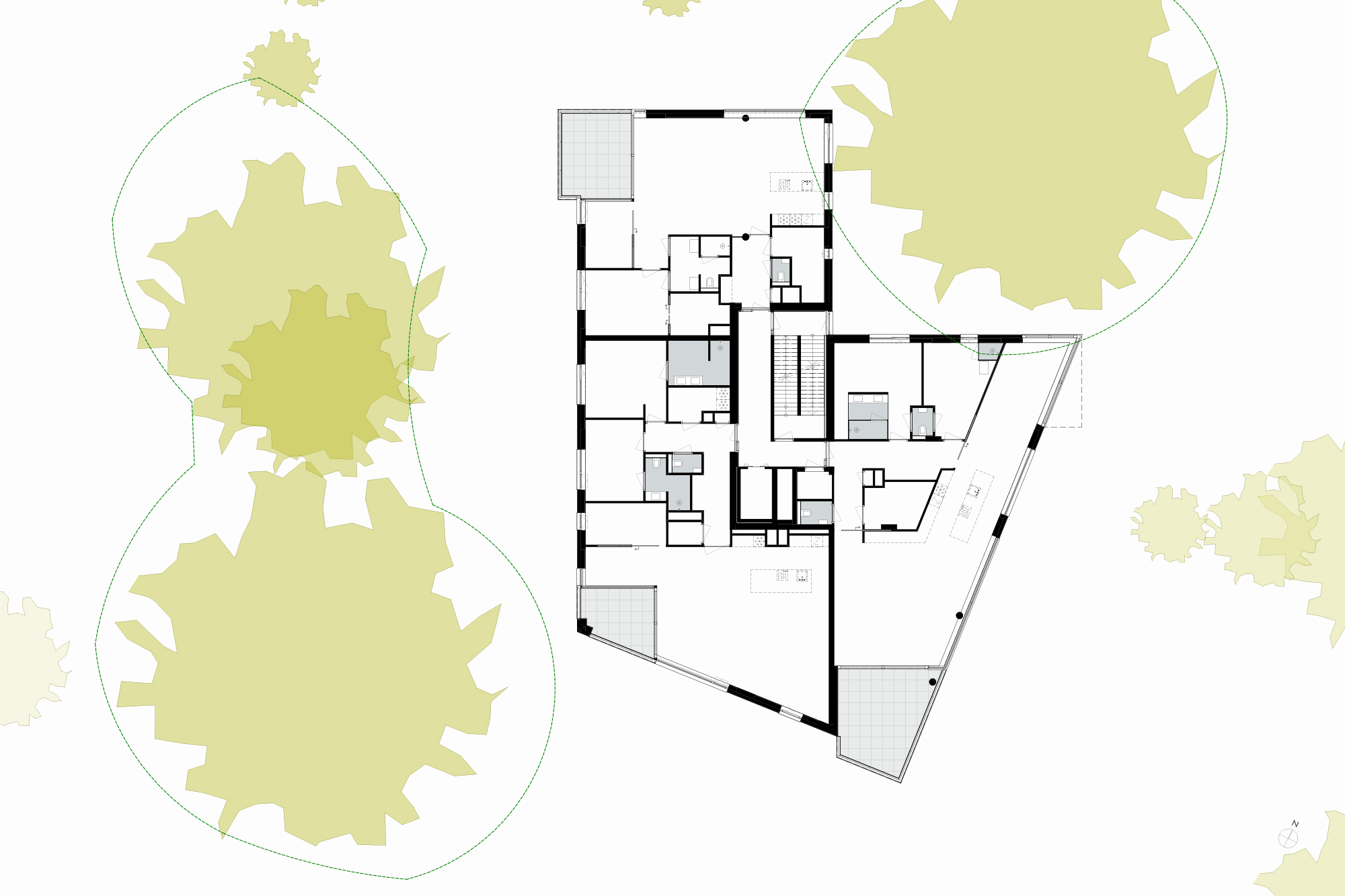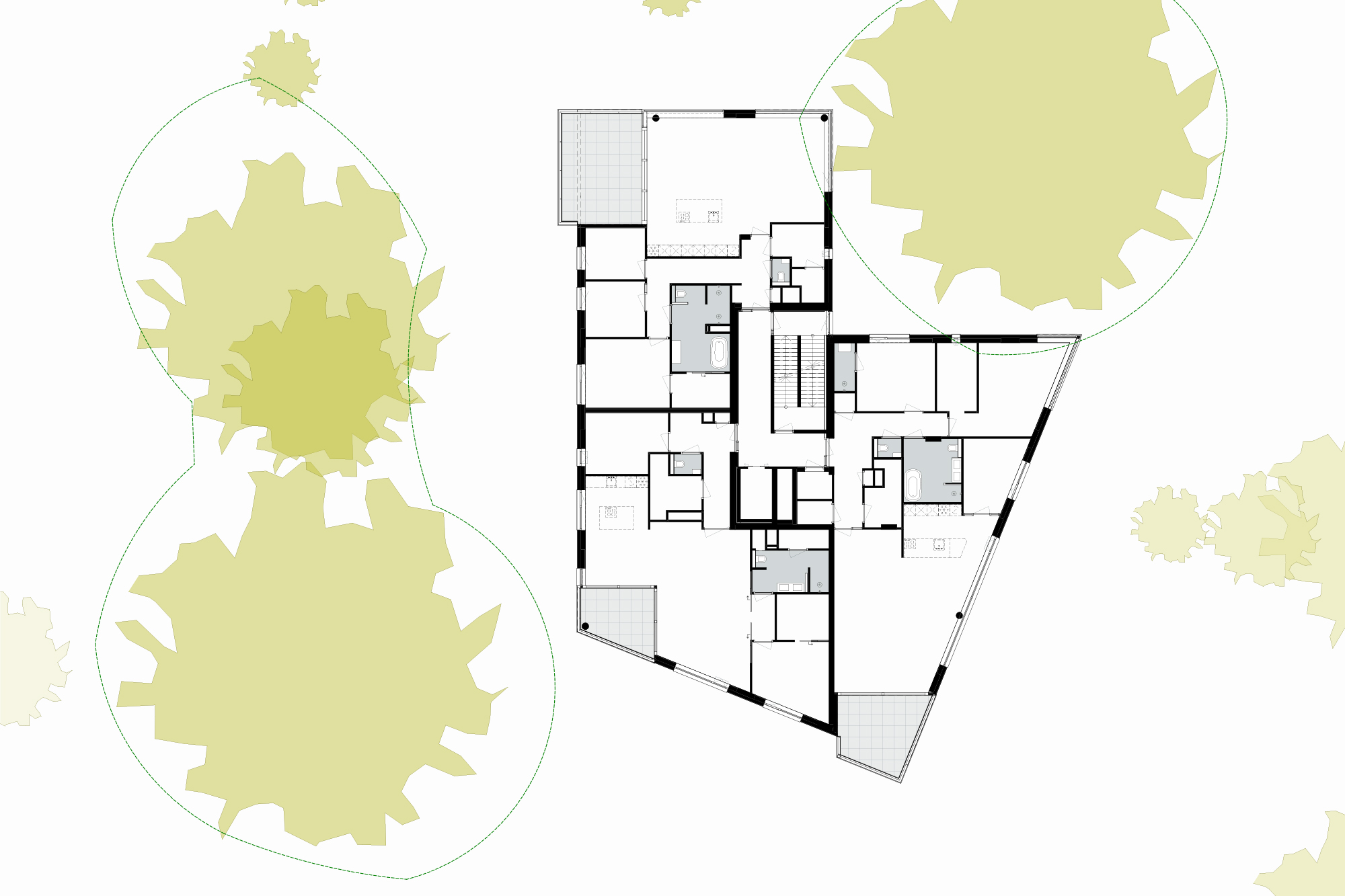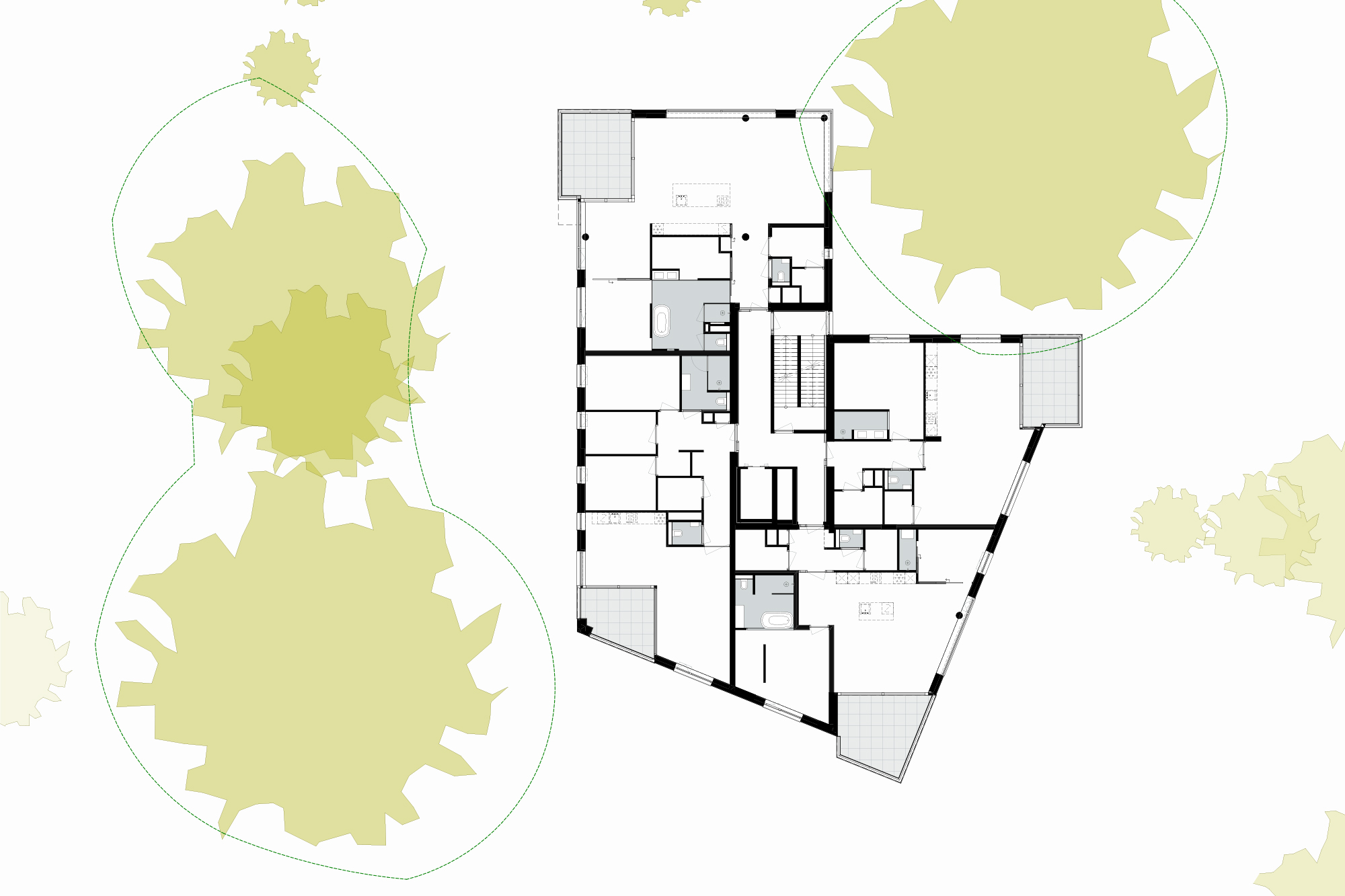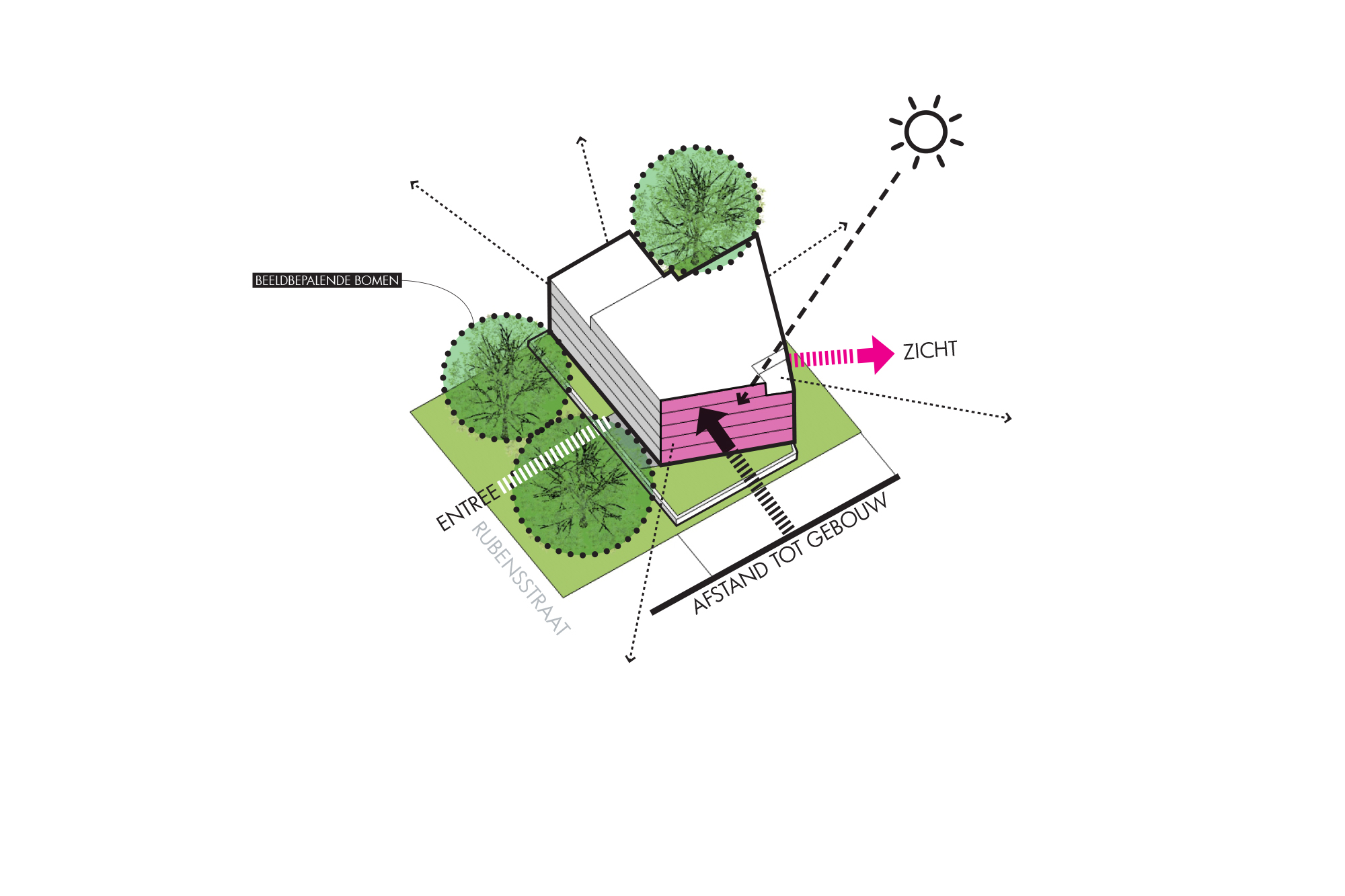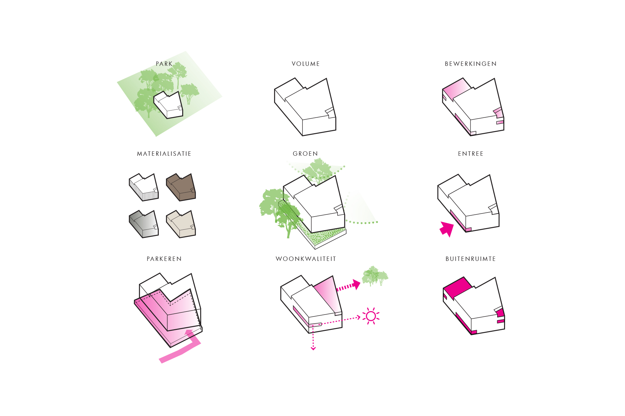 Het ontwerp richt zich op een bijzondere woonkwaliteit, waarbij een woning op maat met uitzicht op de omgeving en optimale bezonning belangrijk zijn. Het ontwerp houdt daarbij sterk rekening met de oriëntatie van het gebouw en de aansluiting met park-omgeving, o.a. aantal grote zomereiken op de kavel en het naastgelegen CPO project zijn van invloed op de vorm en plattegrondindeling.