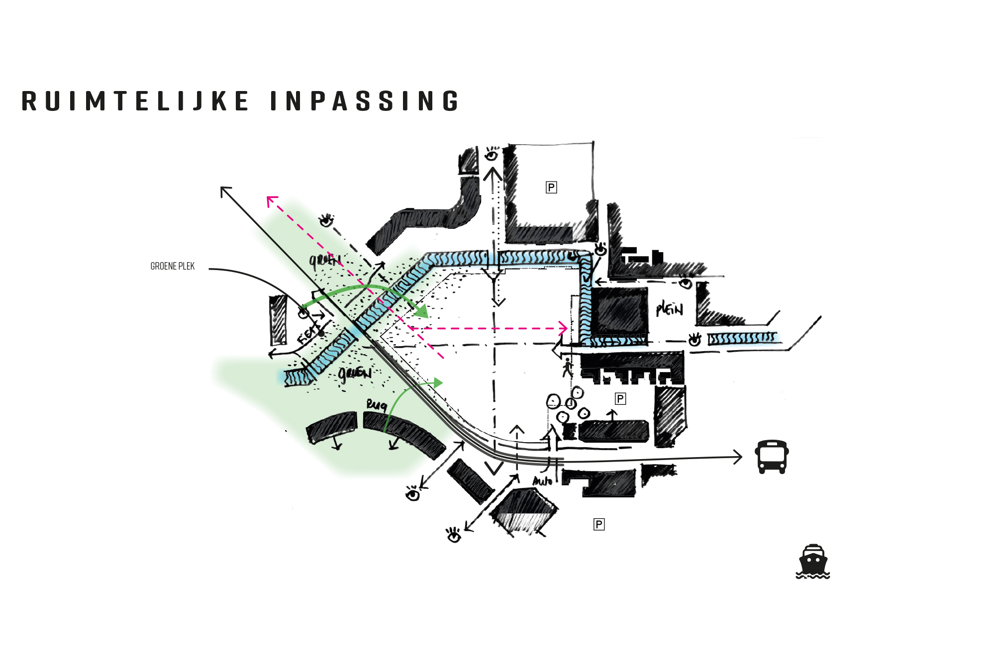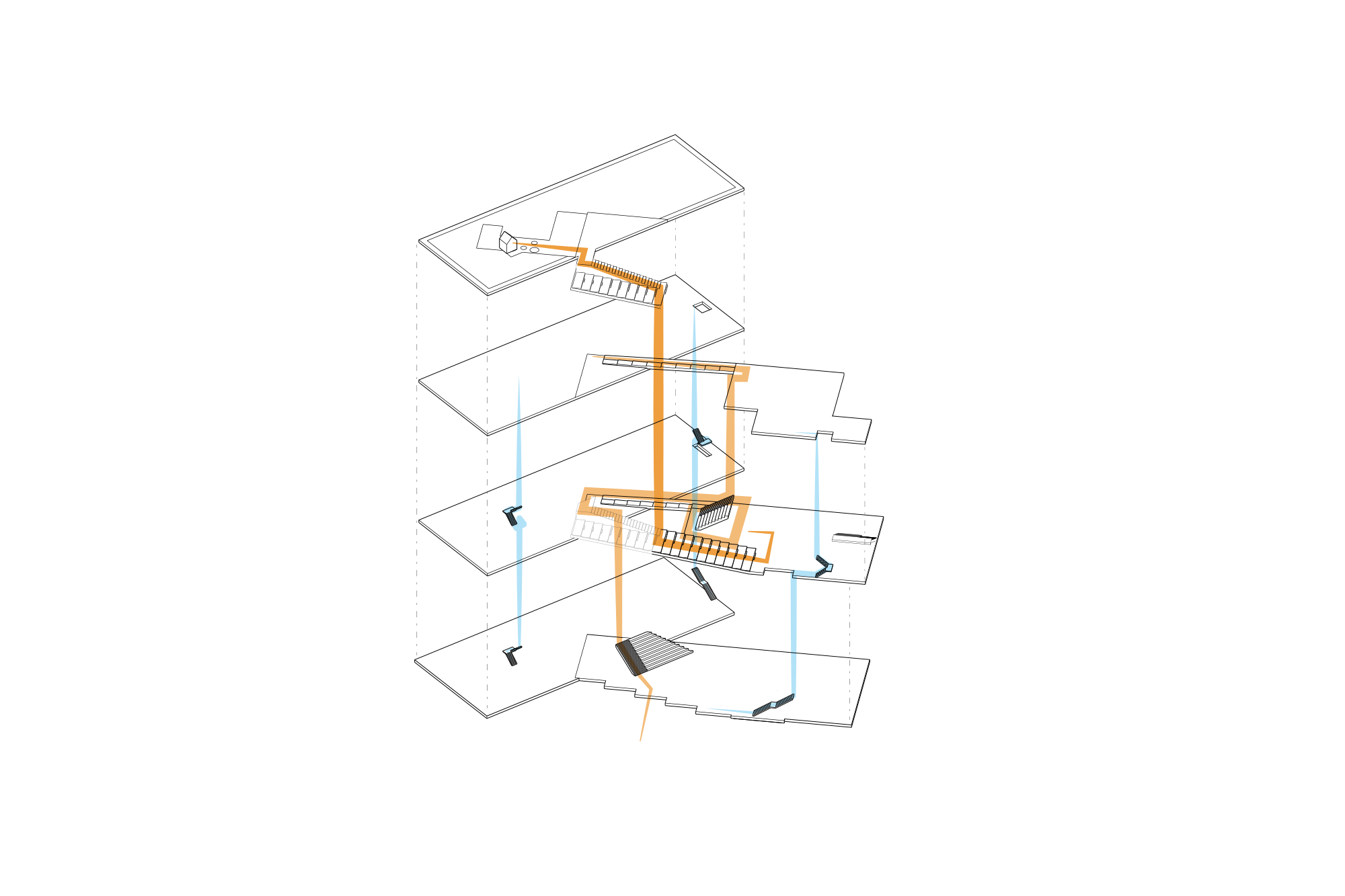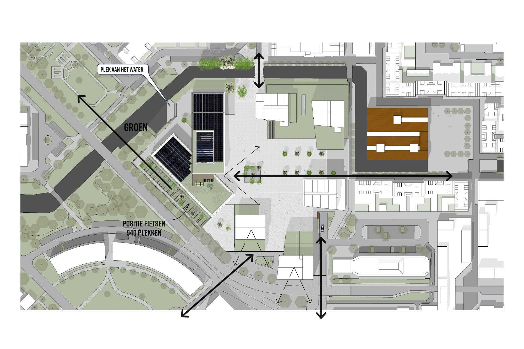 De vraag naar flexibiliteit en gemengd gebruik (buiten schooluren) is leidend geweest in het ontwerp en in de ordening van het gebouw. De route architecturale is de leidraad door het ontwerp. Deze route is gecomponeerd om het centrale hart van de school. Deze plek opent zich direct naar het plein en het water. De route begeleidt de gebruiker door de verschillende zones; van dynamische werkgebieden rondom het hart van de school tot aan de instructieruimten. De looproute wordt ook gebruikt als ontmoetings- en werkplek.