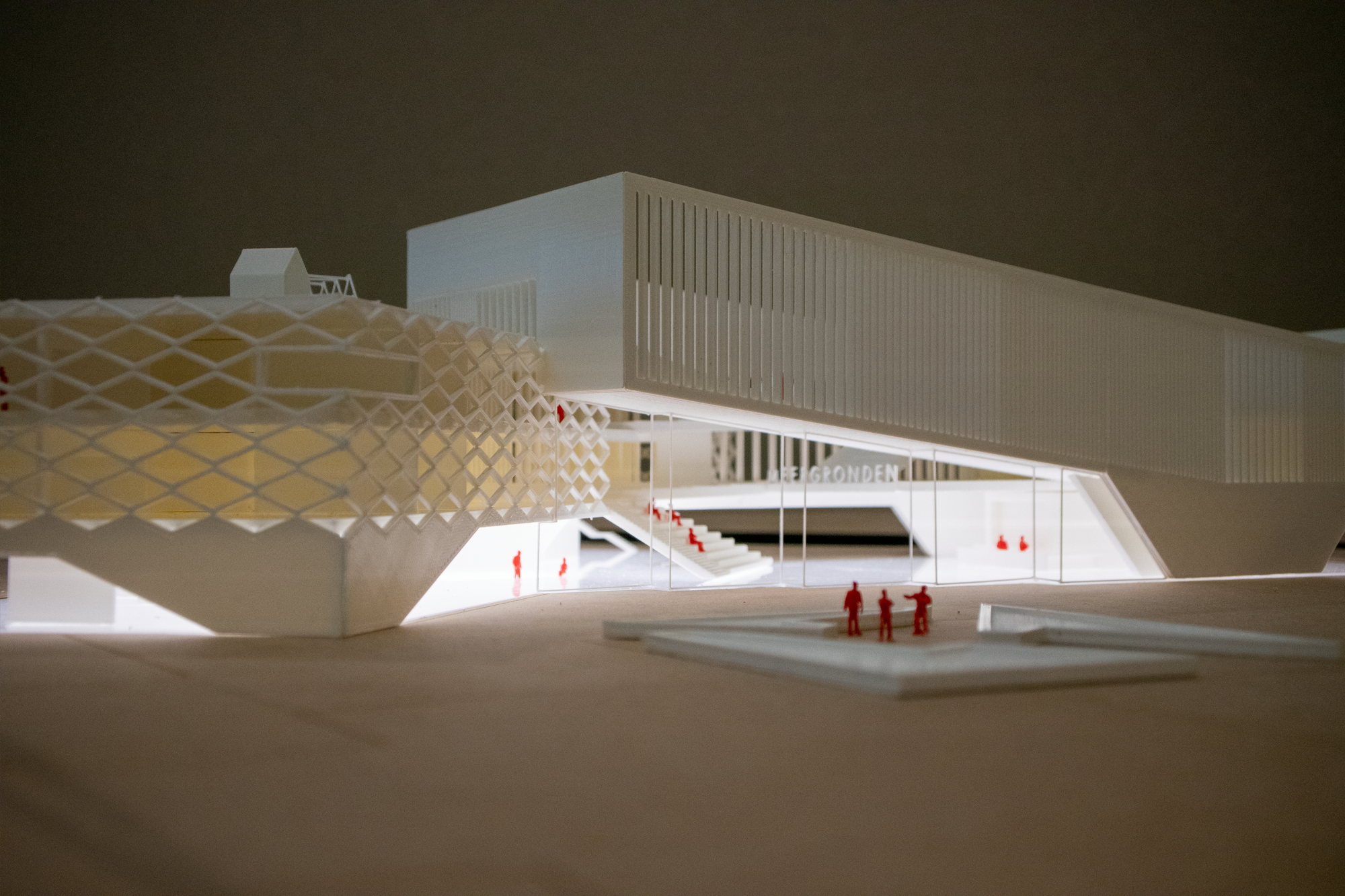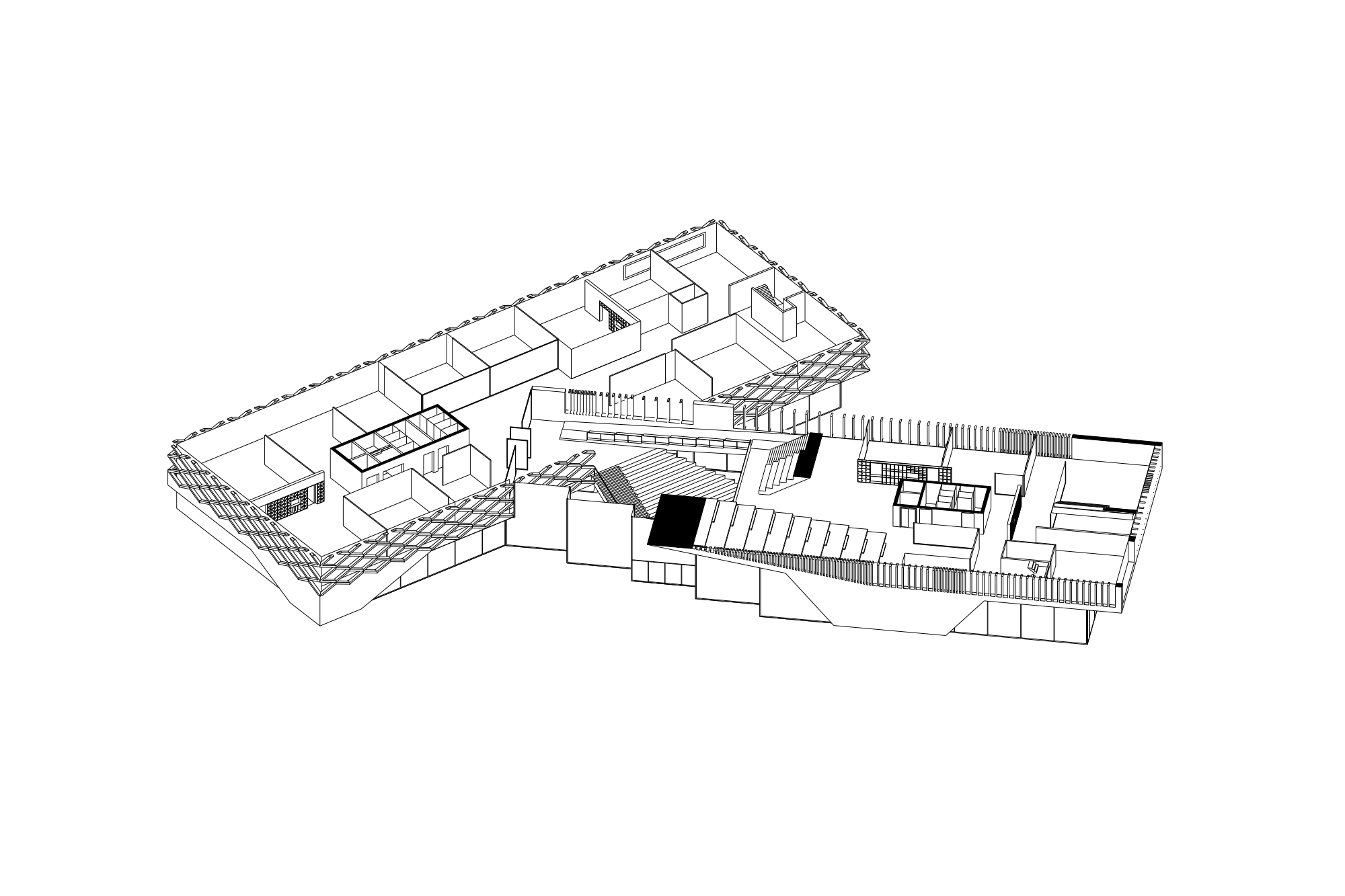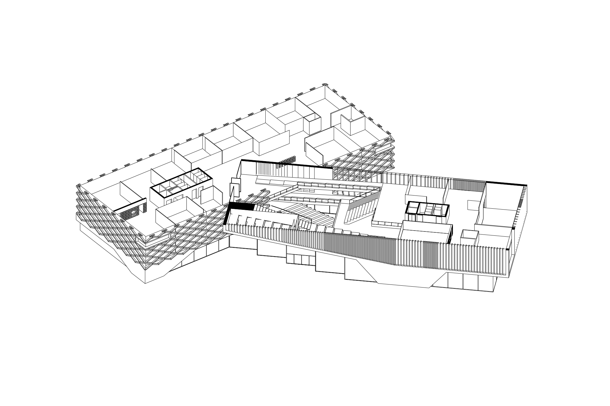 De transparante gevels van hout en beton filteren licht en het zicht naar buiten en zorgt voor een constante oriëntatie van de school in en op het gebied. Hierdoor ontstaat een gebouw dat verbindt en bestaande grenzen opheft.