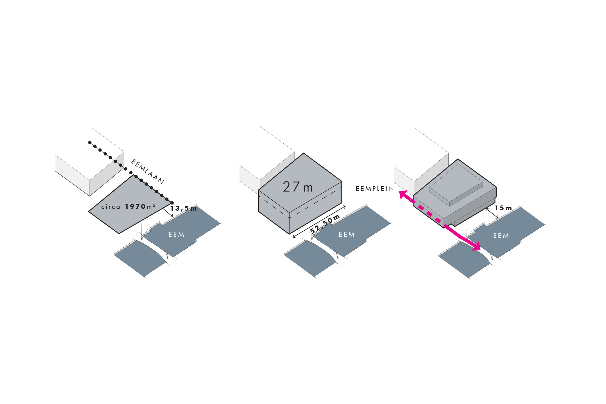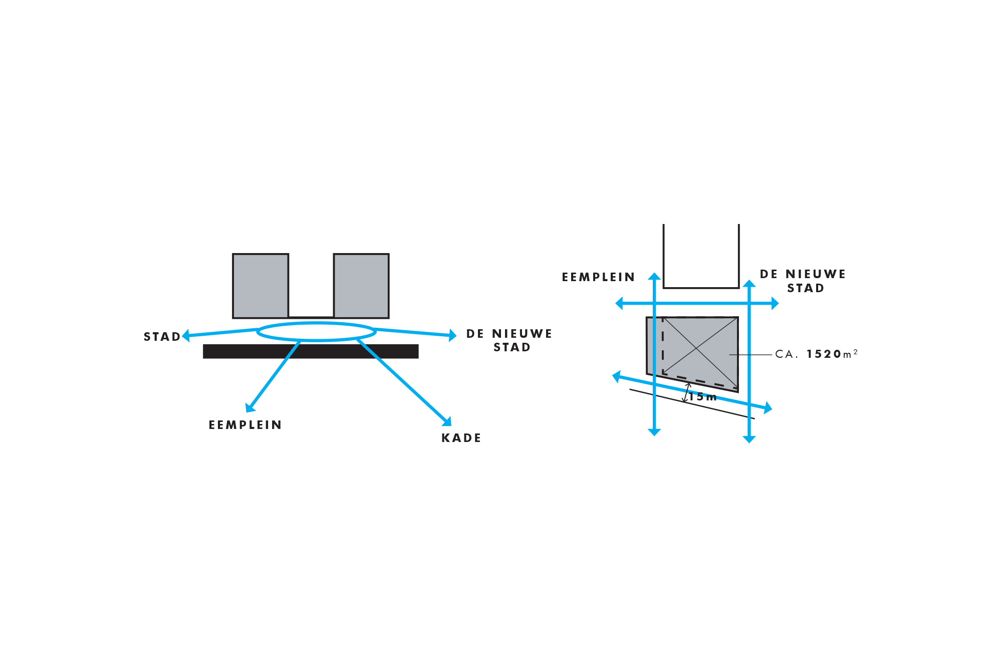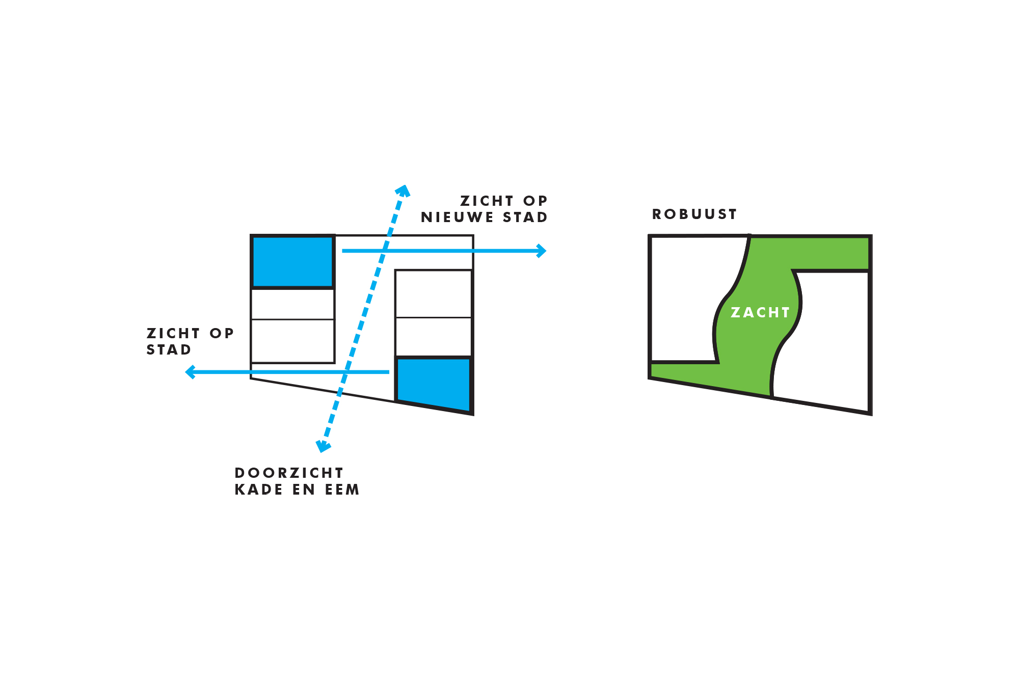 De dynamiek van het Eemplein met het Eemhuis als functioneel en architectonisch hoogtepunt neemt zienderogen toe. Ook de plannen voor De Nieuwe Stad krijgen vorm. De kades zijn aangepakt en fungeren als waardevolle verblijfsruimtes. Blok 3 aan de kade en op de kop van het Eemplein is de schakel tussen Eemplein, de oude historische stad en De nieuwe Stad. Daarnaast maakt het onderdeel uit van een kralenreeks van ontwikkelingen vanaf de Koppelpoort de stad uit naar de kop van Isselt en verder. De schaal van de stad is aan de kade circa 8 tot 10 meter hoog. Maar historisch zijn ook hoogteaccenten zeer bepalend en karakteristiek geweest.