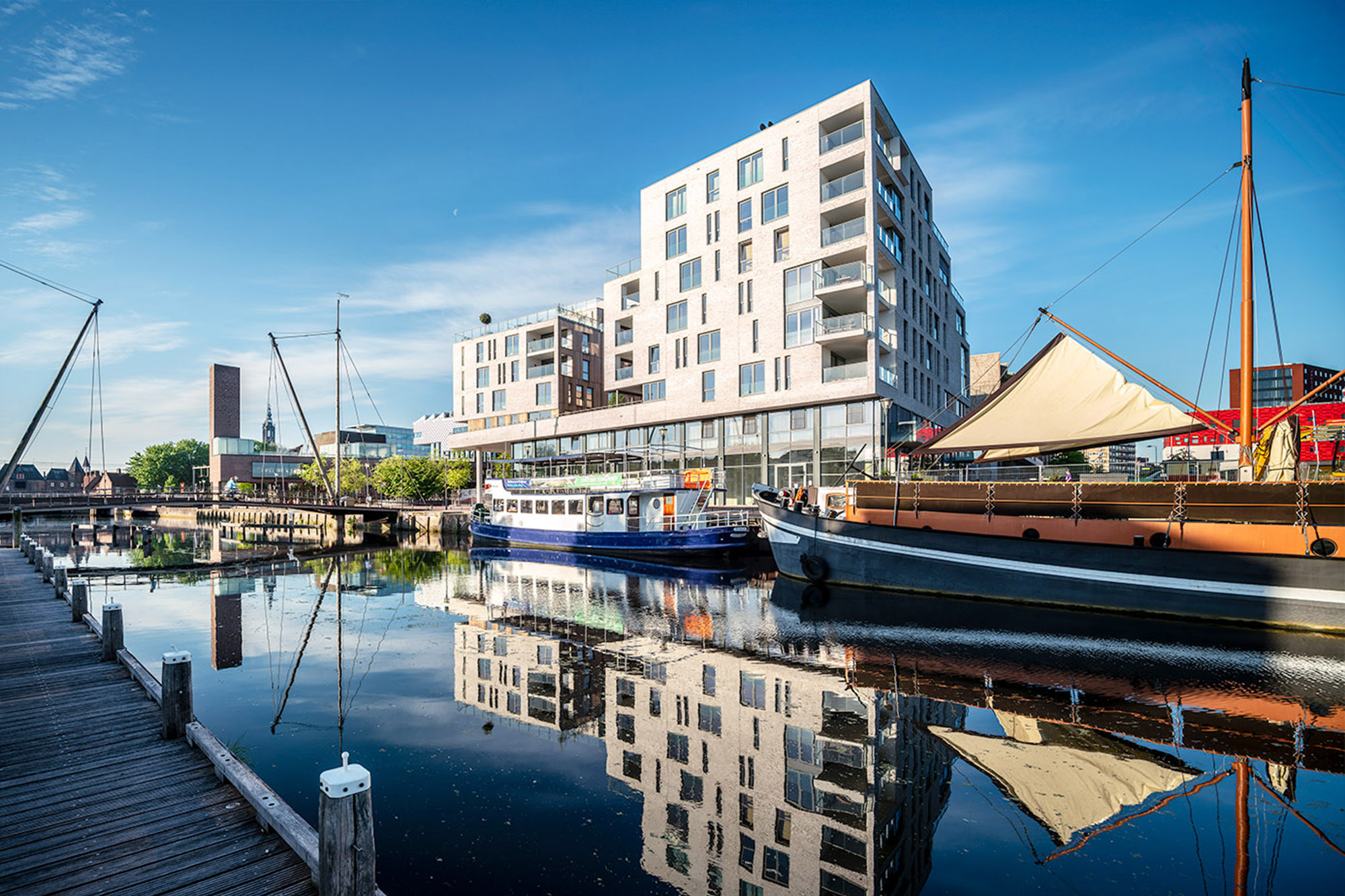 De bebouwing aan de kade dient attractief te zijn in functie en in architectuur. Op deze plek staan nu twee markante gebouwen. Het Eemhuis en Dara. Blok 3 voegt zich daarbij. Een uitgesproken blok in functie en in architectuur. Enerzijds pakt het nieuwe blok de schaal op van het gebied. De plint is circa 9 meter hoog. Anderzijds zorgt het nieuwe blok voor een ruimtelijke afsluiting van het plein en afronding van de bebouwing aan het Eemplein door de historische hoogte weer op te zoeken. Die hoogte hoort ons inziens ook bij een duurzame compacte stad.