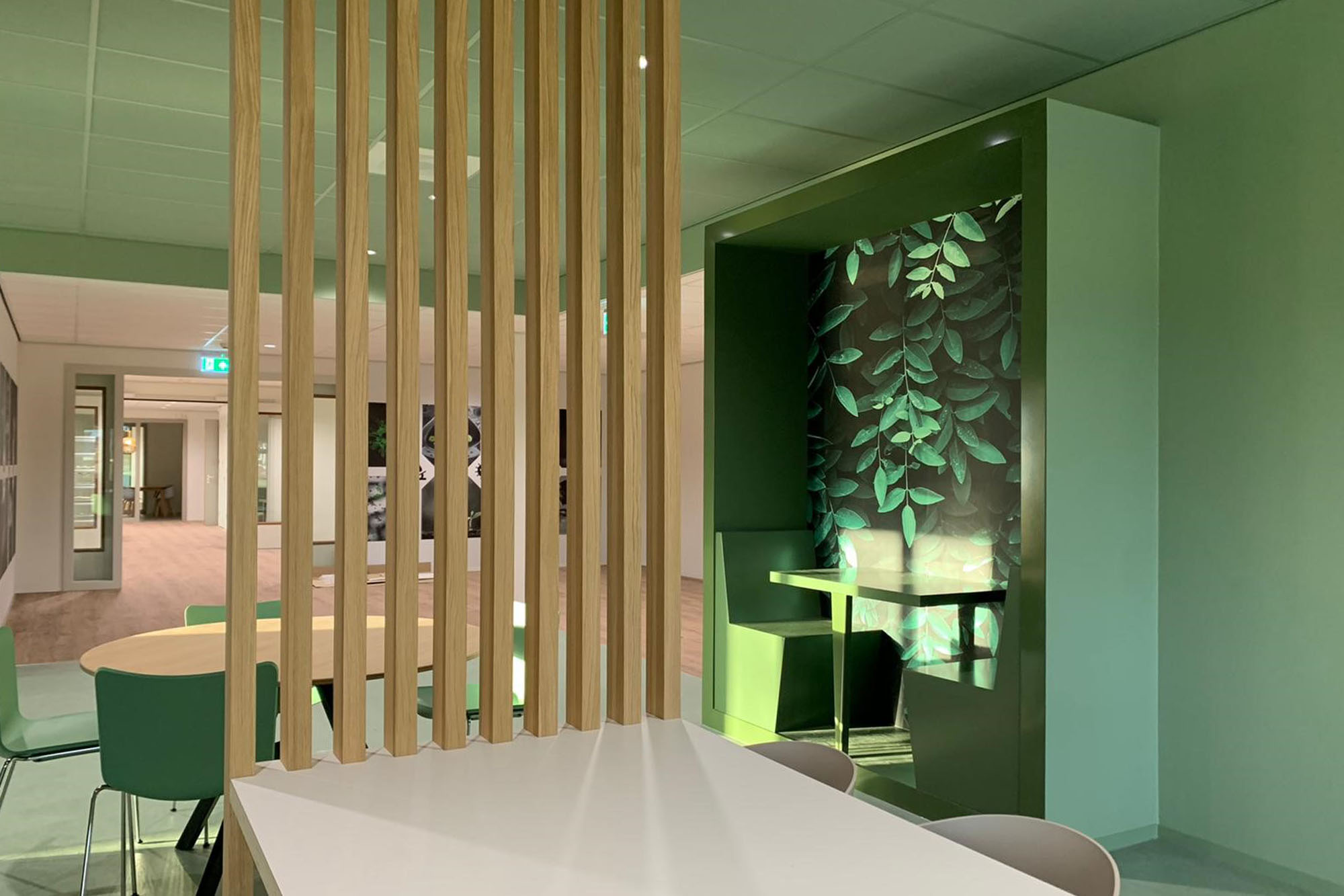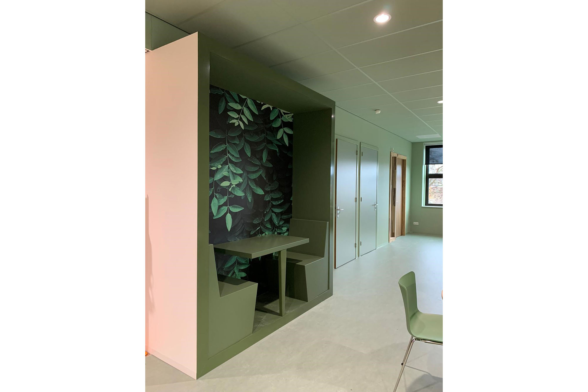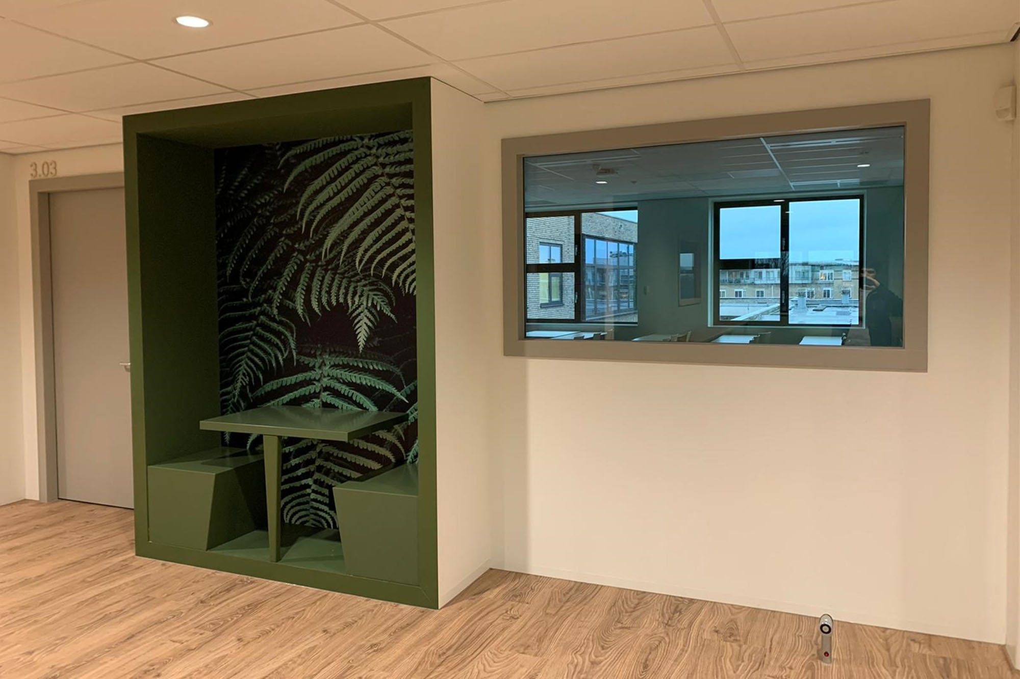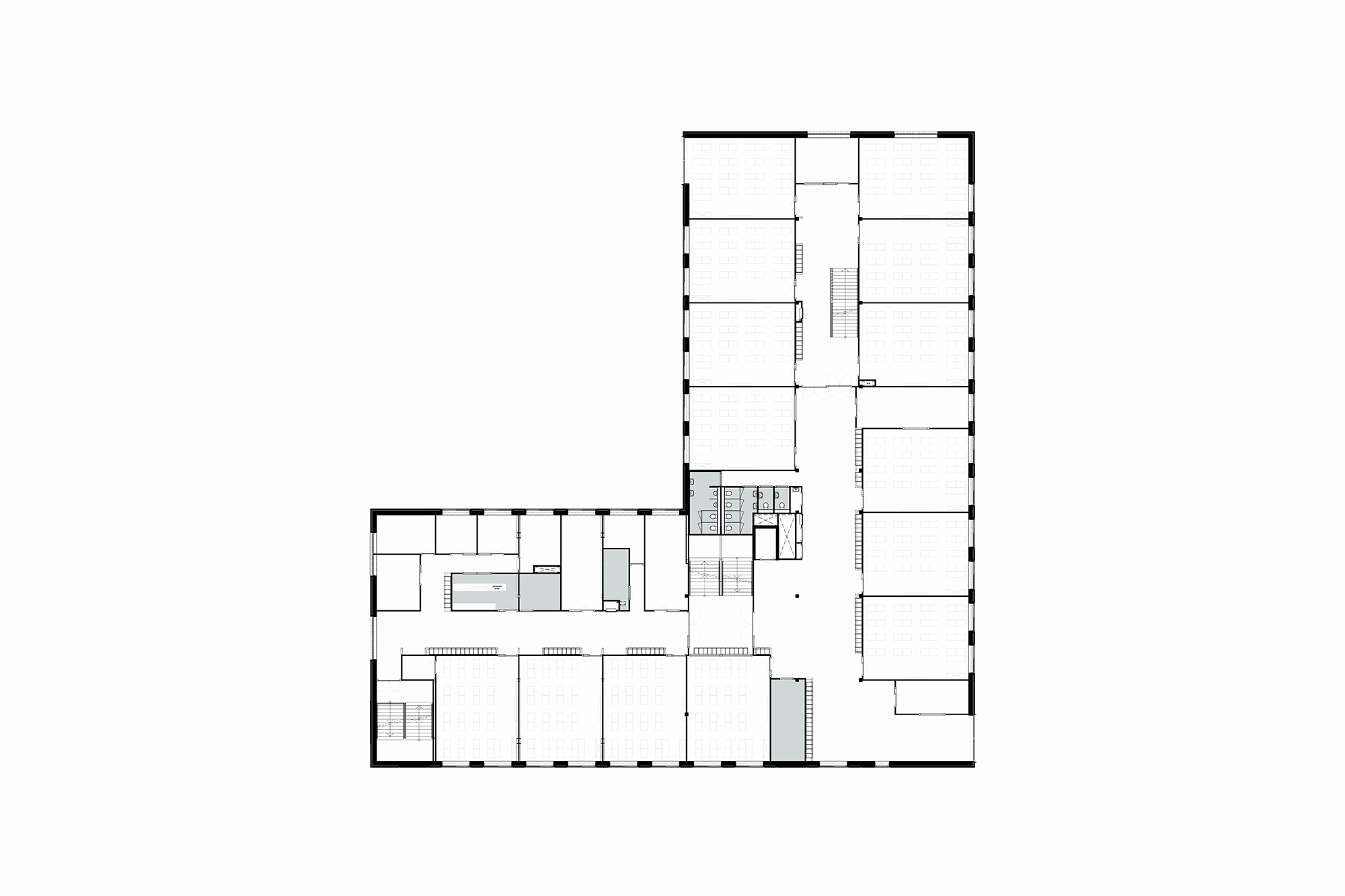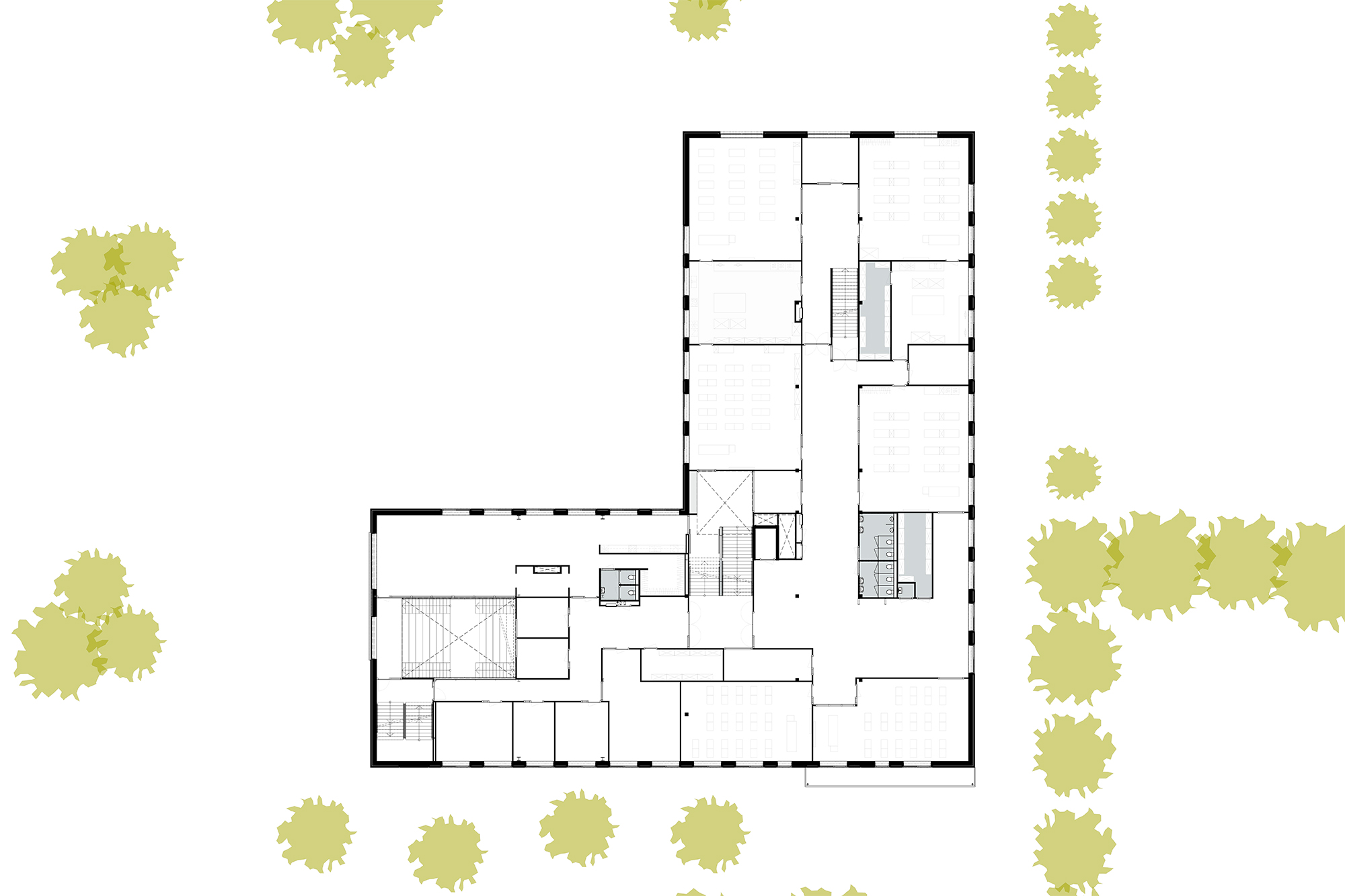 De horizontale ontsluiting vindt plaats via een middengang met aan weerszijde onderwijsruimte. Op strategisch posities zijn er studiepleinen geplaatst. Aan deze studiepleinen grenzen meerdere lokalen en/of studio’s en lenen zich voor verschillend soort gebruik, van groepswerk tot stilte werkplek. In de gang bevinden zich naast de kluisjes ook duoplekken. Deze bieden plaats voor coachinggesprekken tussen leerkracht en leerlingen of dienen als plek voor overleg tussen leerkrachten en/of leerlingen. De algemene ontmoetingsruimte zijn gepositioneerd op de begane grond in de vorm van een verdiepte aula met tribune trap naar de verdieping en een pauzeruimte rondom een cluster van niet-daglicht behoevende ruimte. Daarmee ontstaan er diverse mogelijkheden voor gebruik. De ontmoetingsruimte ligt aan de gevel en biedt daarmee uitzicht op de omgeving.
