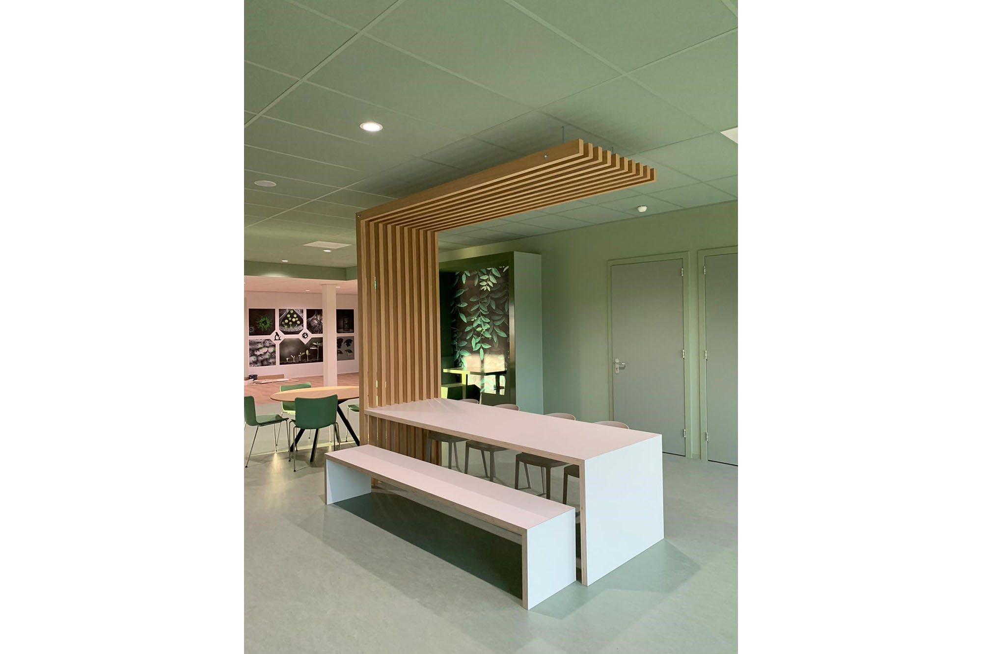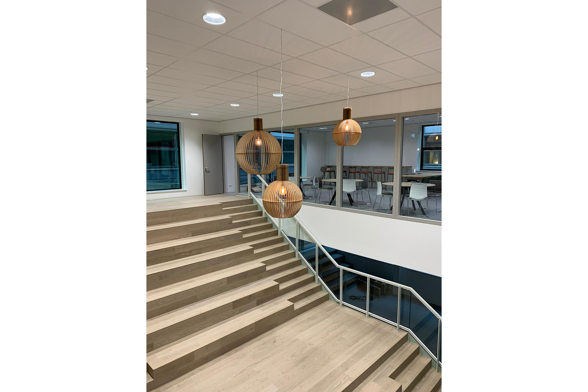 De ruimtelijke organisatie van het onderwijsprogramma is gebaseerd op de onderwijsvisie, welke kortweg behoefte heeft aan andersoortige ruimte naast een lokaal, bijvoorbeeld in de vorm van studiepleinen, stilte werkplekken en duoplekken. De verschillende vak domeinen zijn terug te vinden elk op een eigen verdieping, daarentegen is de personeelsruimte door het hele gebouw verspreid. Drie volwaardige, verschillende trappen zorgen voor de verticale verkeerstroming.