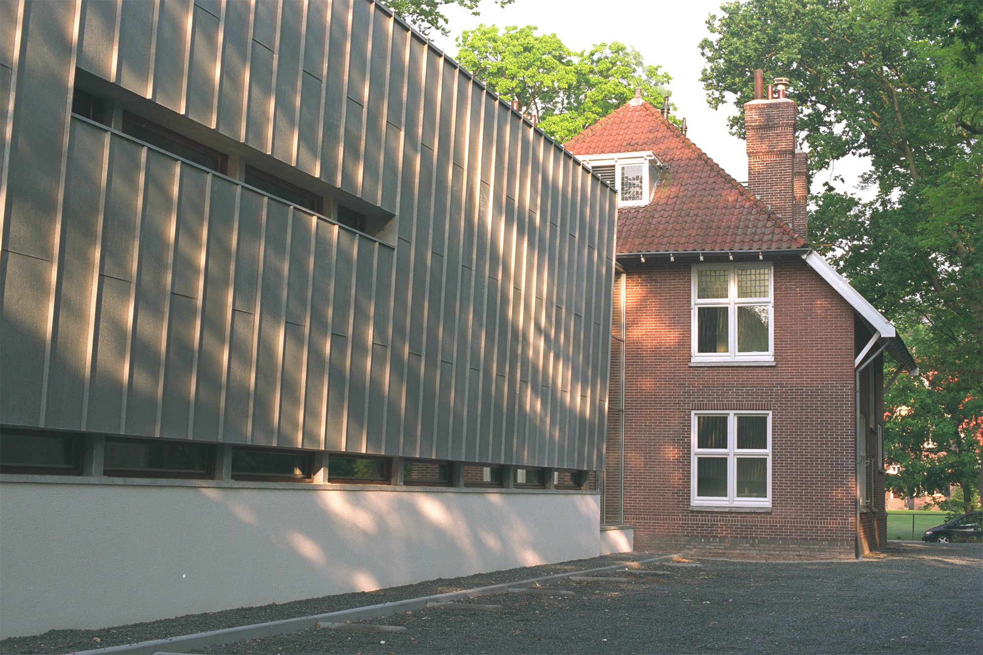 De nieuwbouw maakt een nieuw gezicht naar de Diependaalselaan, door middel van de sterke doorsnede met een groot overstek en een open gevel met houten lamellen. De achterzijde en het overstek zijn in zink gematerialiseerd.