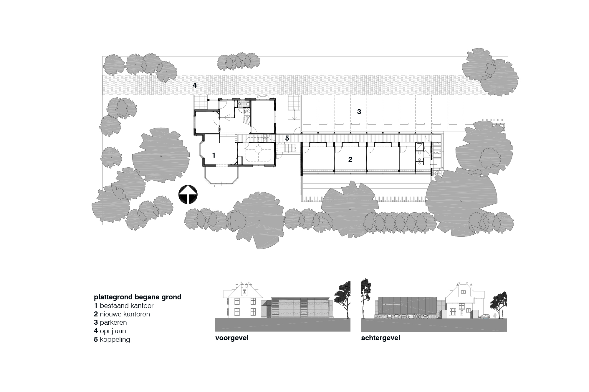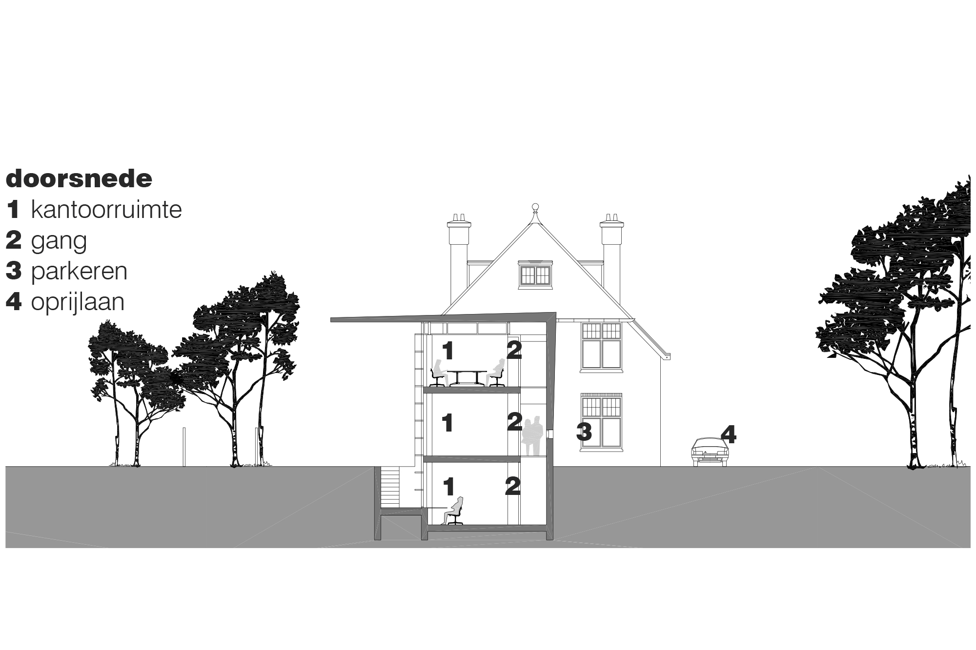 Op de hoek van de Utrechtseweg en de Diependaalselaan ligt een oude karakteristieke villa die heringedeeld en uitgebreid wordt ten behoeve van een kantoorfunctie. Uitgangspunt is het handhaven van de villa en een contrasterende nieuwbouw in 2 bouwlagen met souterrain. Zowel de bestaande villa als de nieuwbouw gaan een relatie aan met het lommerrijke groen.
