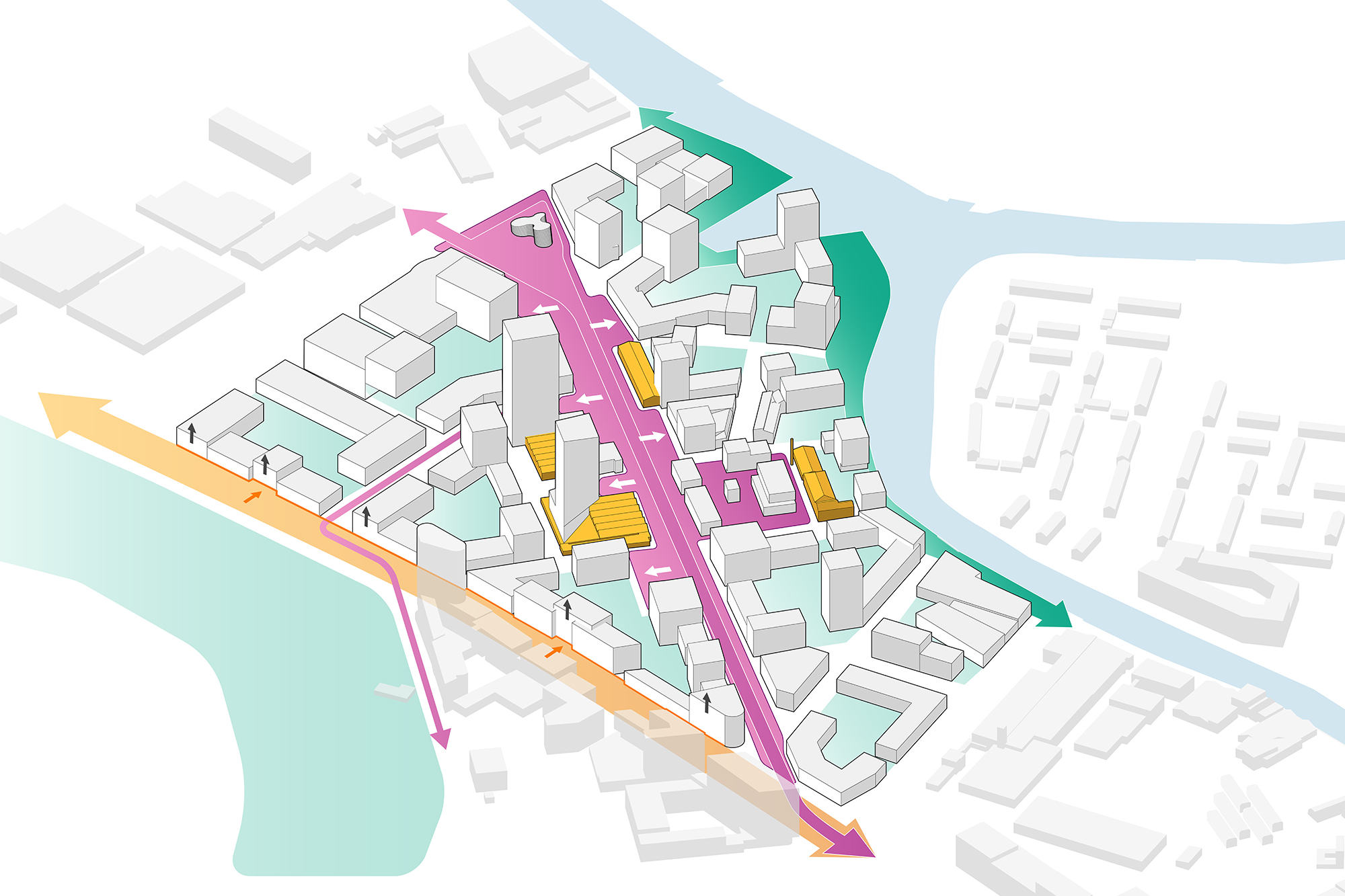 De nieuwe ontwikkeling van de Kop van Isselt is een kans om dicht bij de stad een groot mixed-use programma te realiseren met wonen en werken in diverse categorieën, compact, duurzaam en innovatief. Het voorgestelde framework beschrijft het publieke domein met kamers waarbinnen volgens een bepaalde volgorde en fasering binnen redelijke vrijheid plannen ontwikkelt kunnen worden.