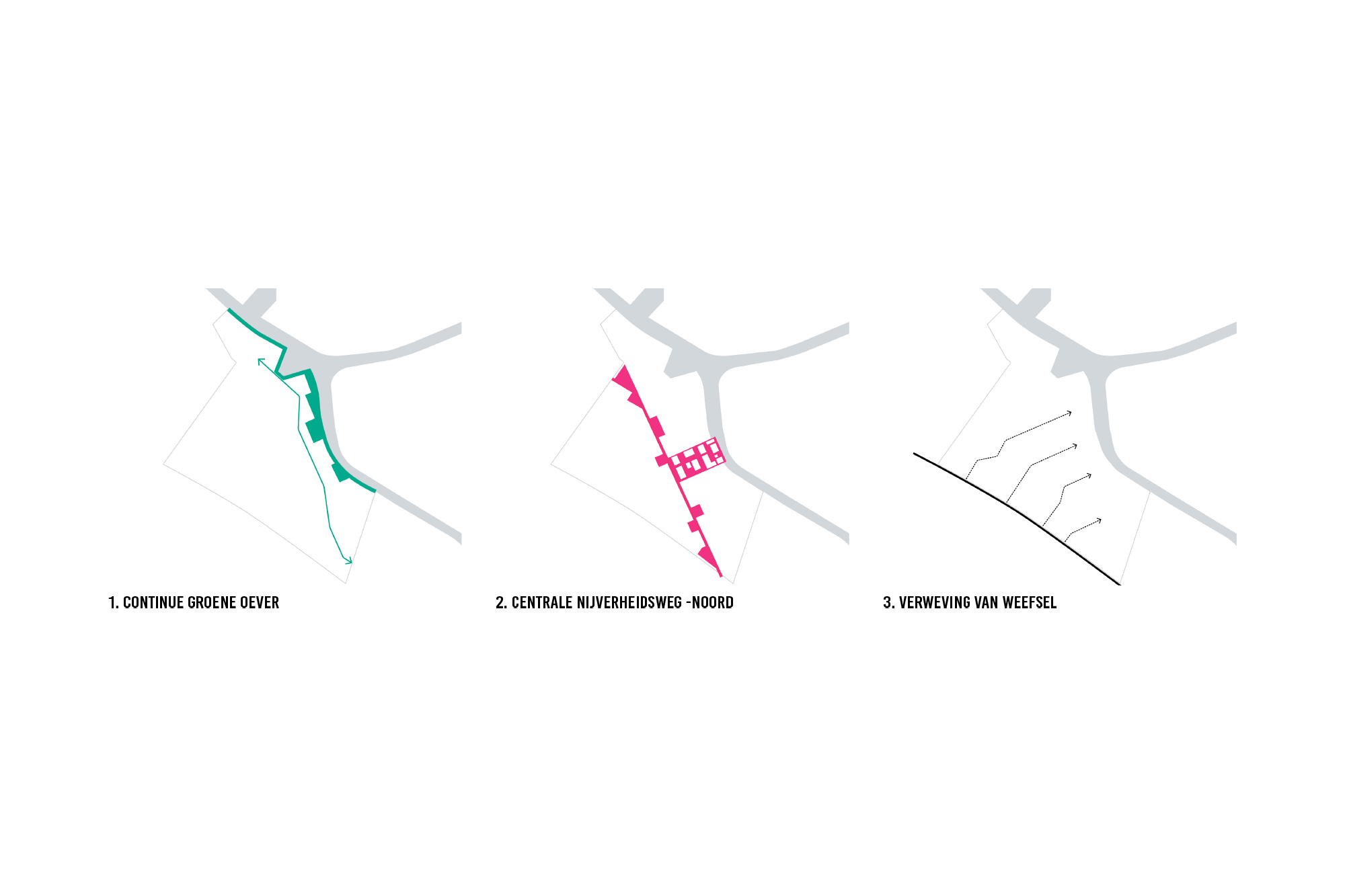 Het gebied zal zich geleidelijk ontwikkelen. De tussentijd situaties moeten ook goed zijn: de tijd dat nieuwe functies toegevoegd worden aan de bestaande bedrijvigheid. De mix van oud en nieuw, van georganiseerd en ongeorganiseerd zorgt voor een informele en levendige binnenstedelijke transformatie, waardoor het gebied stap voor stap kan verkleuren.