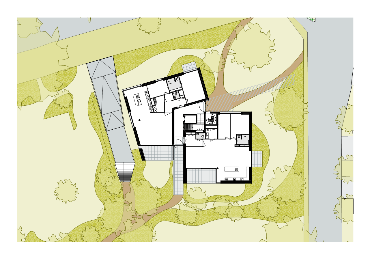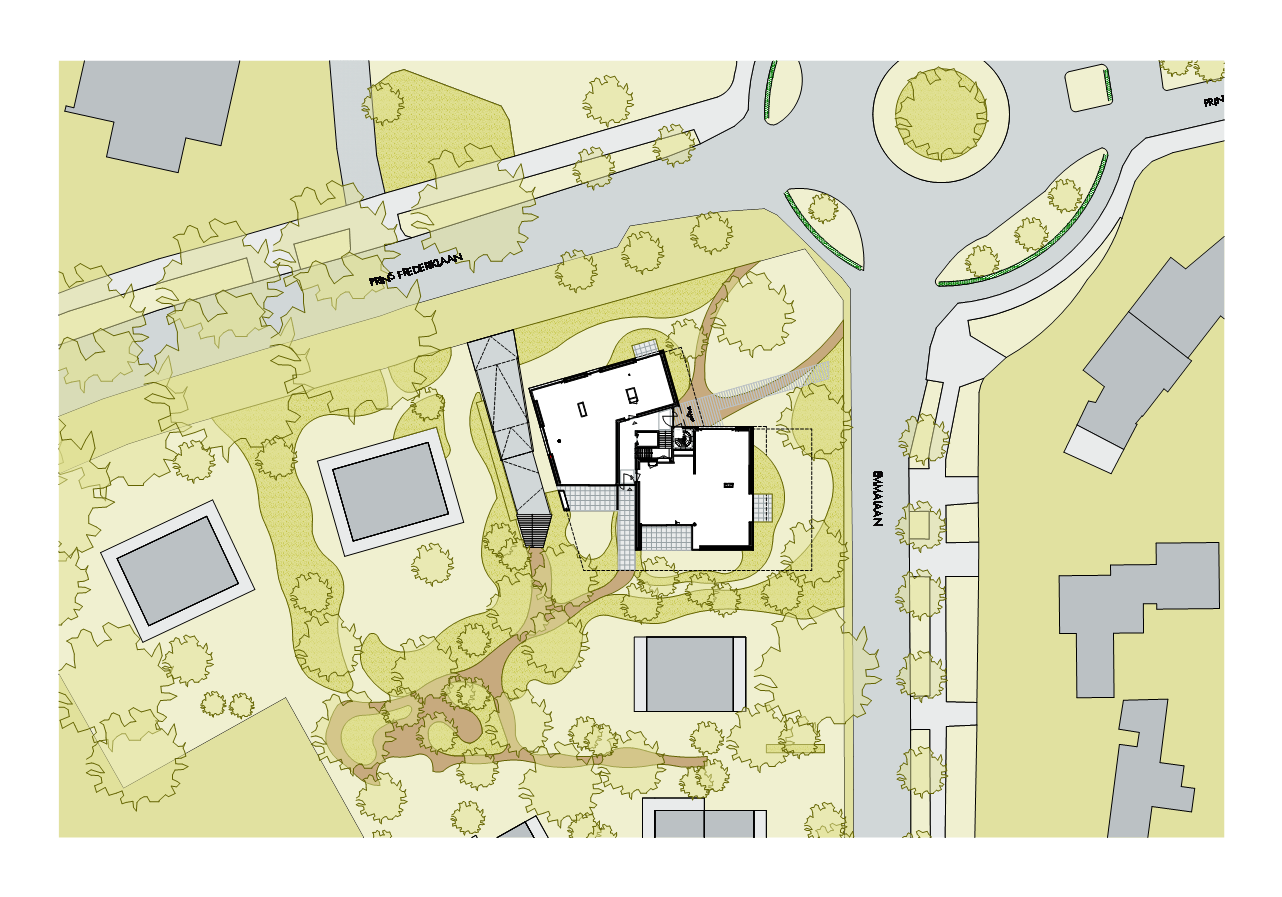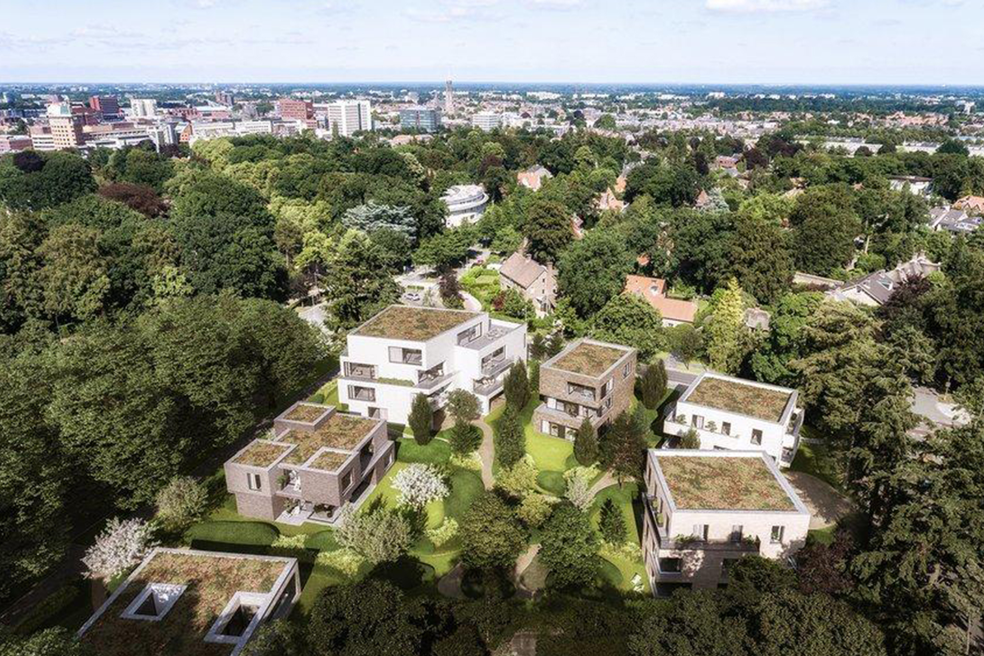 De Urban villa komt te staan in een boomrijke glooiende groene setting met aan de zuidkant in het centrum van het terrein een gemeenschappelijke Engelse landschapstuin. De hoofdentree ligt aan de rotonde en vanuit de lobby is er ook direct verbinding met deze tuin. De buitenruimten van de appartementen zijn sterk gekoppeld aan de leefruimte en oriënteren zich op de tuin. De buitenruimte zijn verschillend in typologie en van vorm, waardoor privacy gewaarborgd blijft en er een gevarieerd gevelbeeld ontstaat.